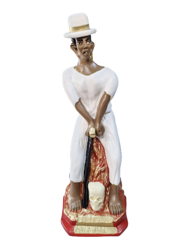Escultura feita em gesso cerâmico que representa Exú Tiriri das Almas com detalhes marcantes e acabamento cuidadoso.